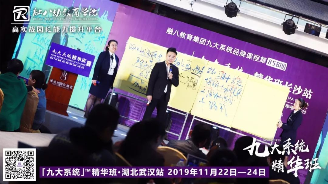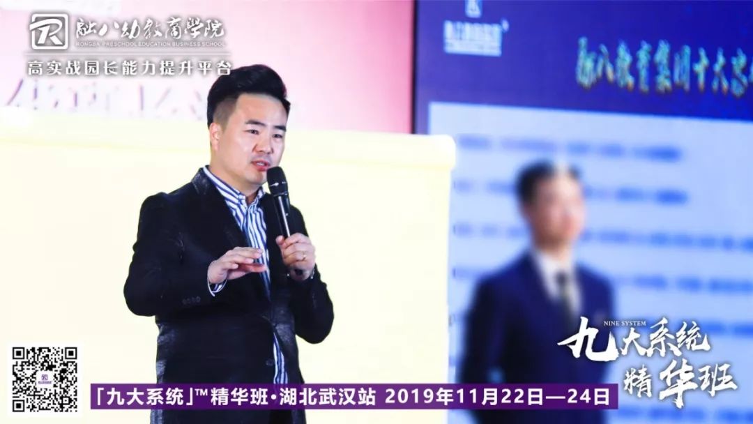 10月27日,《九大系统—精华班6.0》长沙站课程第三天现场,中国幼儿园运营导师、融八教育集团创始人刘博焘(Louis)导师,进行主题为“行业大趋势剖析”“奖励机制落地”“卓越园长打造”等精彩课程内容分享。