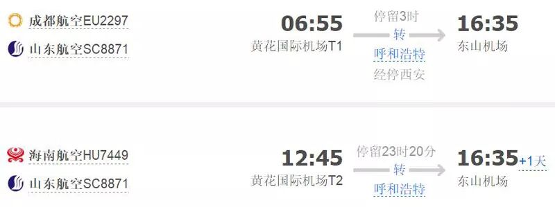关于飞机,长沙到海拉尔没有直达的航班,可以到呼和浩特或者北京进行转机,最快的在当天就可以到达,具体航班可以参考下图: