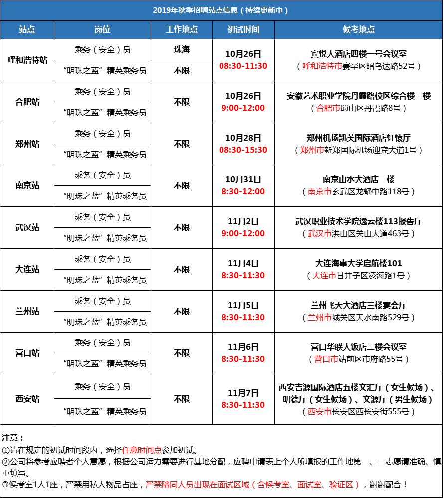 2019年南航乘务