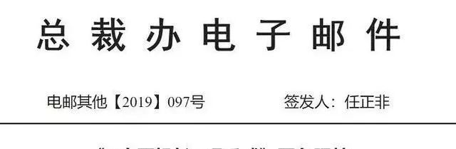 最近的一次是在10月9日,任正非签发华为总裁办电子邮件,转发华为人对电影《中国机长》的观后感。(家庭教育)