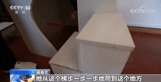 申晓燕使用不了正常孩子的桌凳阚南忠就专门为她设计了带有梯子的凳子