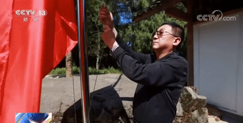 “一是她看了姐姐拍的学校升旗视频她(就)也很想参加升旗仪式二是修学校,必须有旗杆和旗帜这是一个标志”