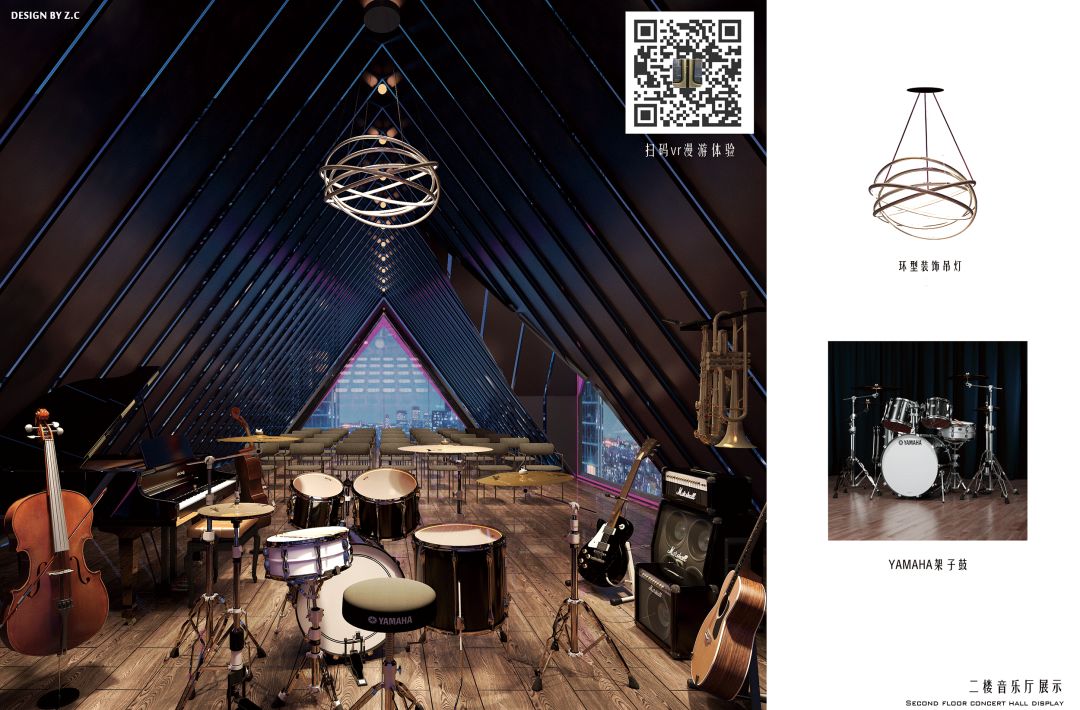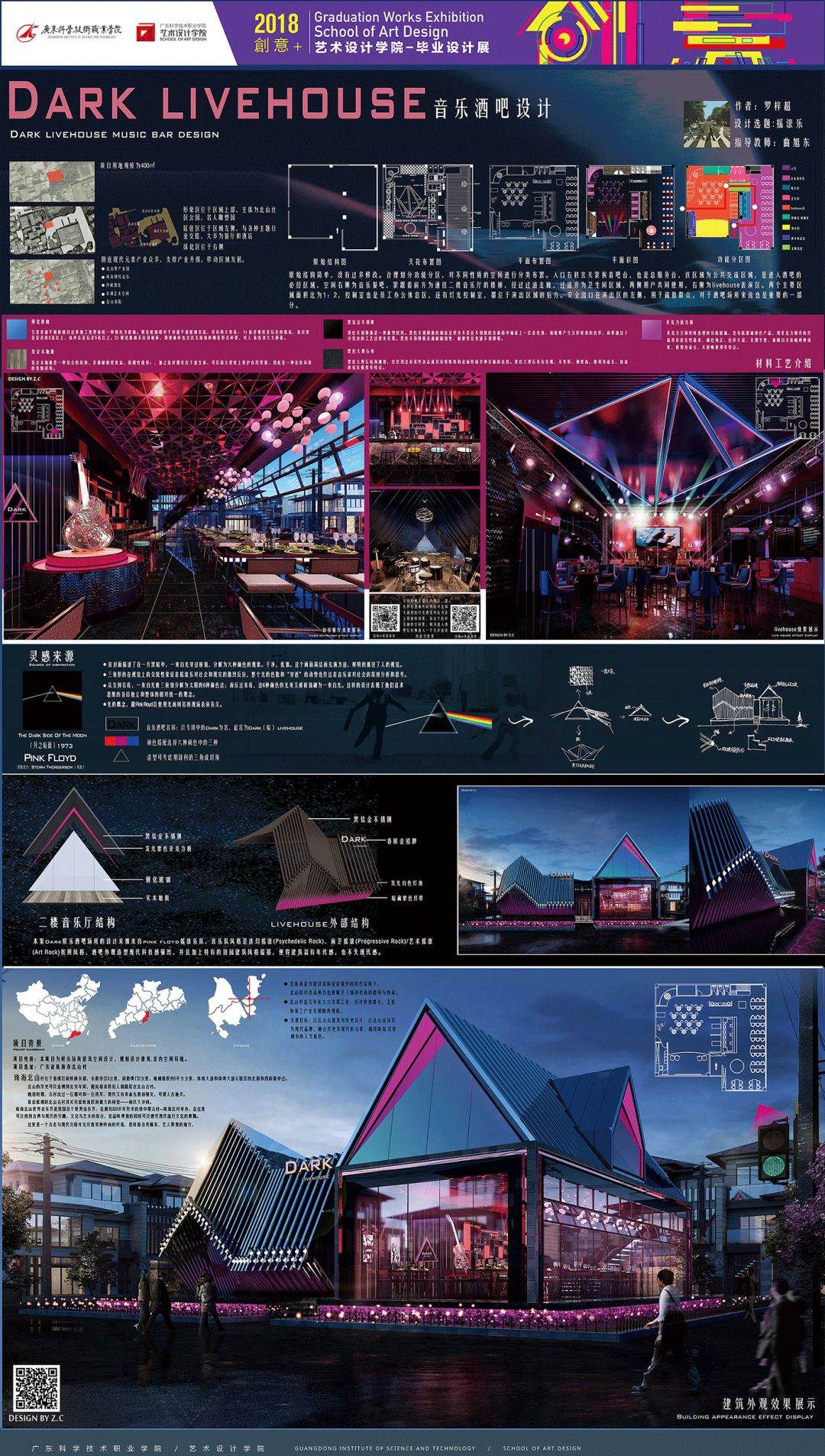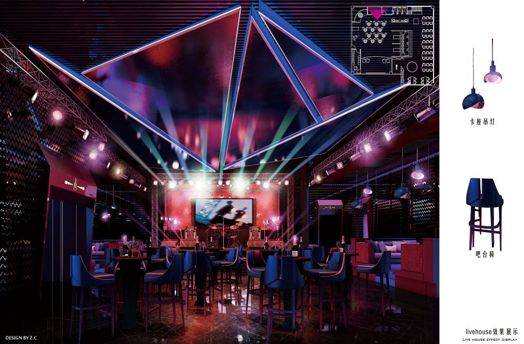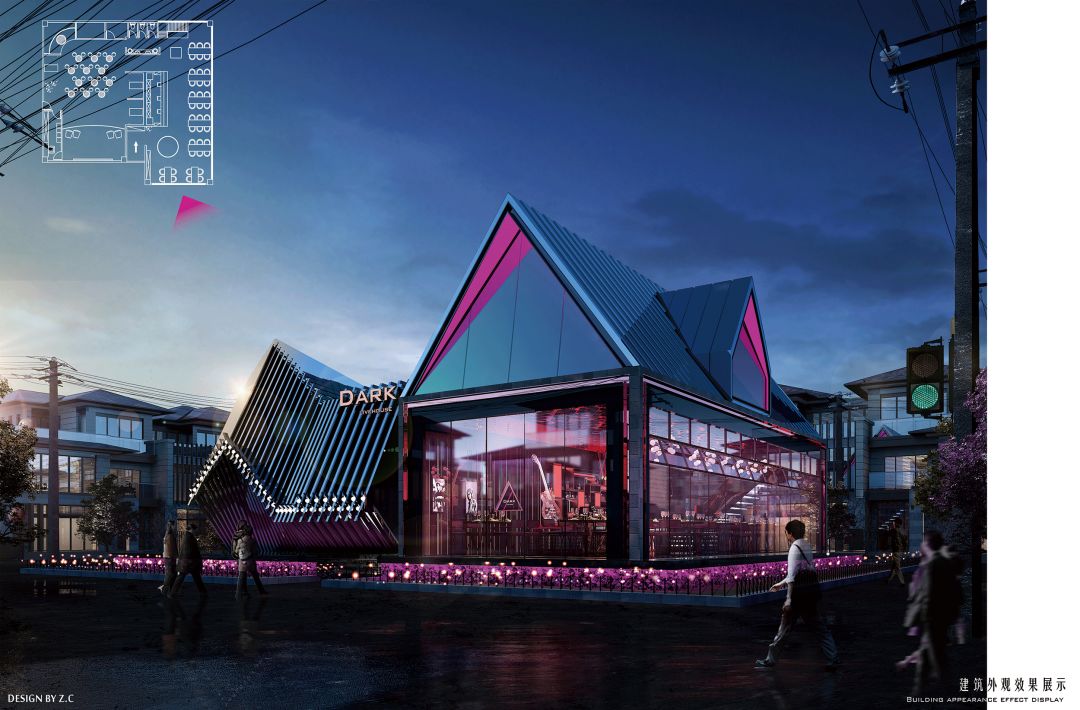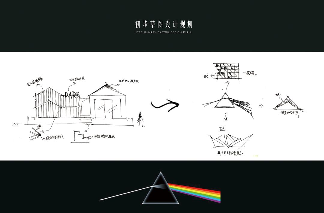 由于我平时喜欢在空闲时间去livehouse感受音乐现场,所以这次我也是选择设计一个带livehouse的音乐餐吧,运用专辑的封面造型和颜色,我构建了基本的框架和造型,并取名为DARK livehouse。