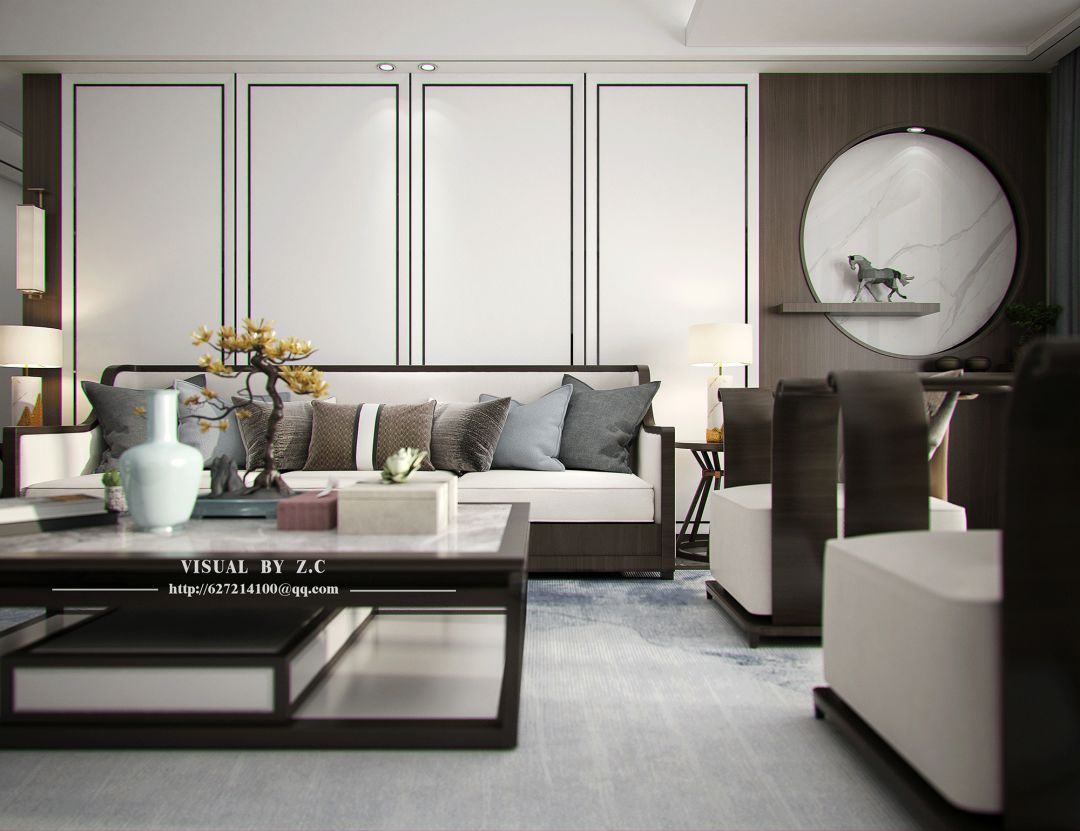 这是一套新中式风格的表现作品,古朴大气,庄重雅致。传统文化和现代理念的碰撞和融合,是这几年来此类风格的一种表达方式。